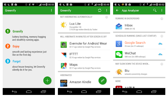 Yang pertama, aplikasi pembersih RAM yang wajib anda miliki adalah Greenify. Aplikasi yang dikembangkan oleh Oasis Feng sudah di unduh sebanyak 10 juta pengguna di seluruh dunia. Untuk anda yang ingin memilikinnya tidak perlu khawatir, karena kapasitasnya hanya 2,5 MB saja.