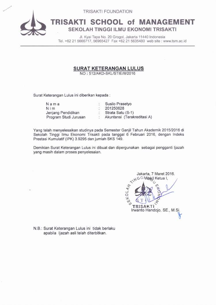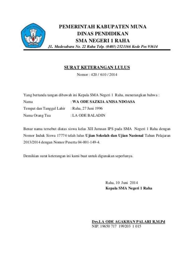 Demikian surat ini disampaikan kepada yang bersangkutan untuk dipergunakan sebagaimana mestinya sampai dengan penerbitan ijazah.